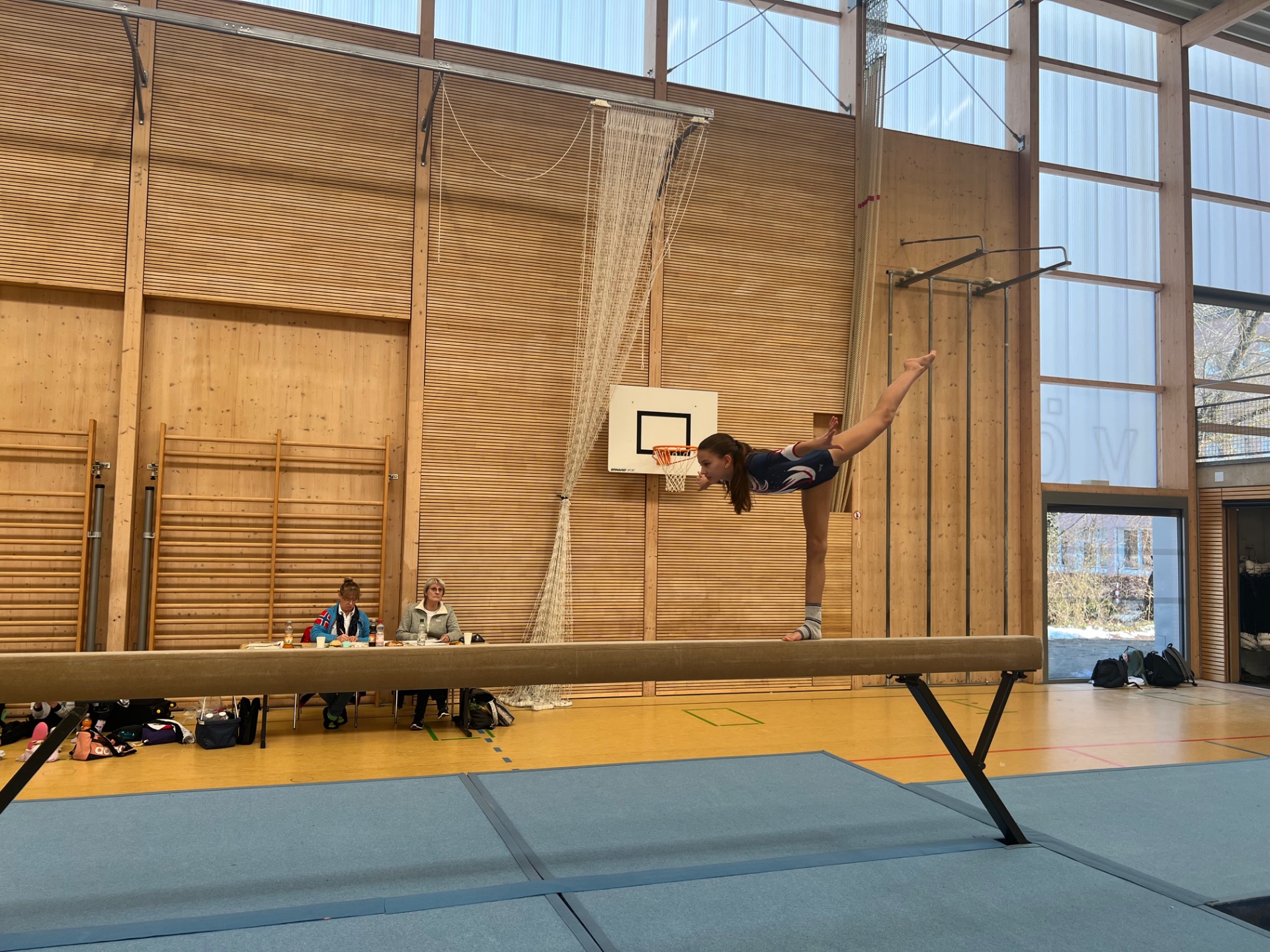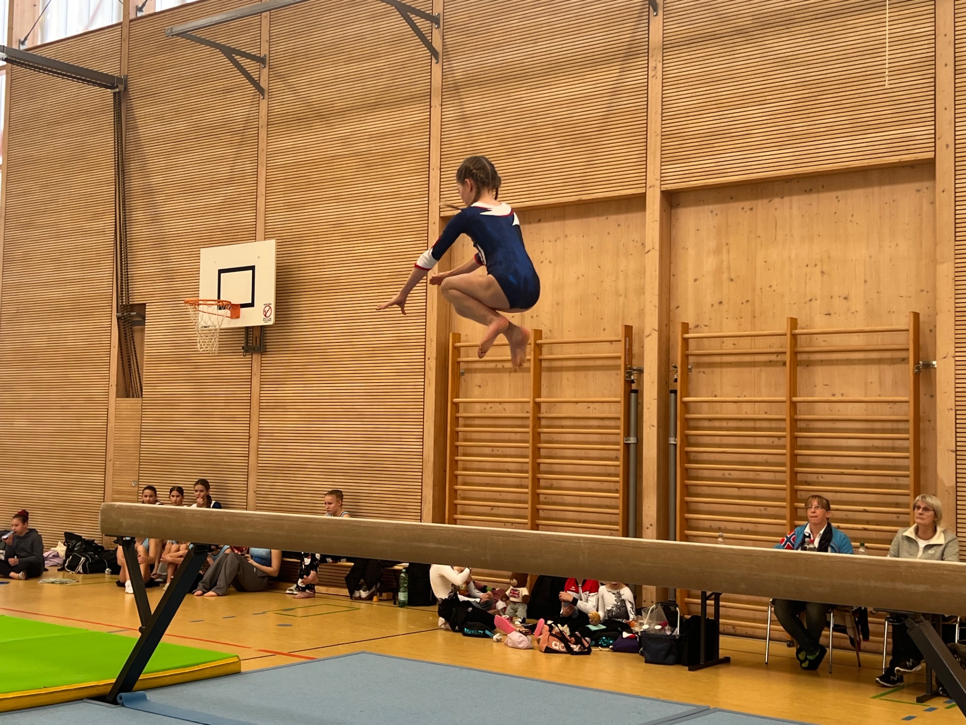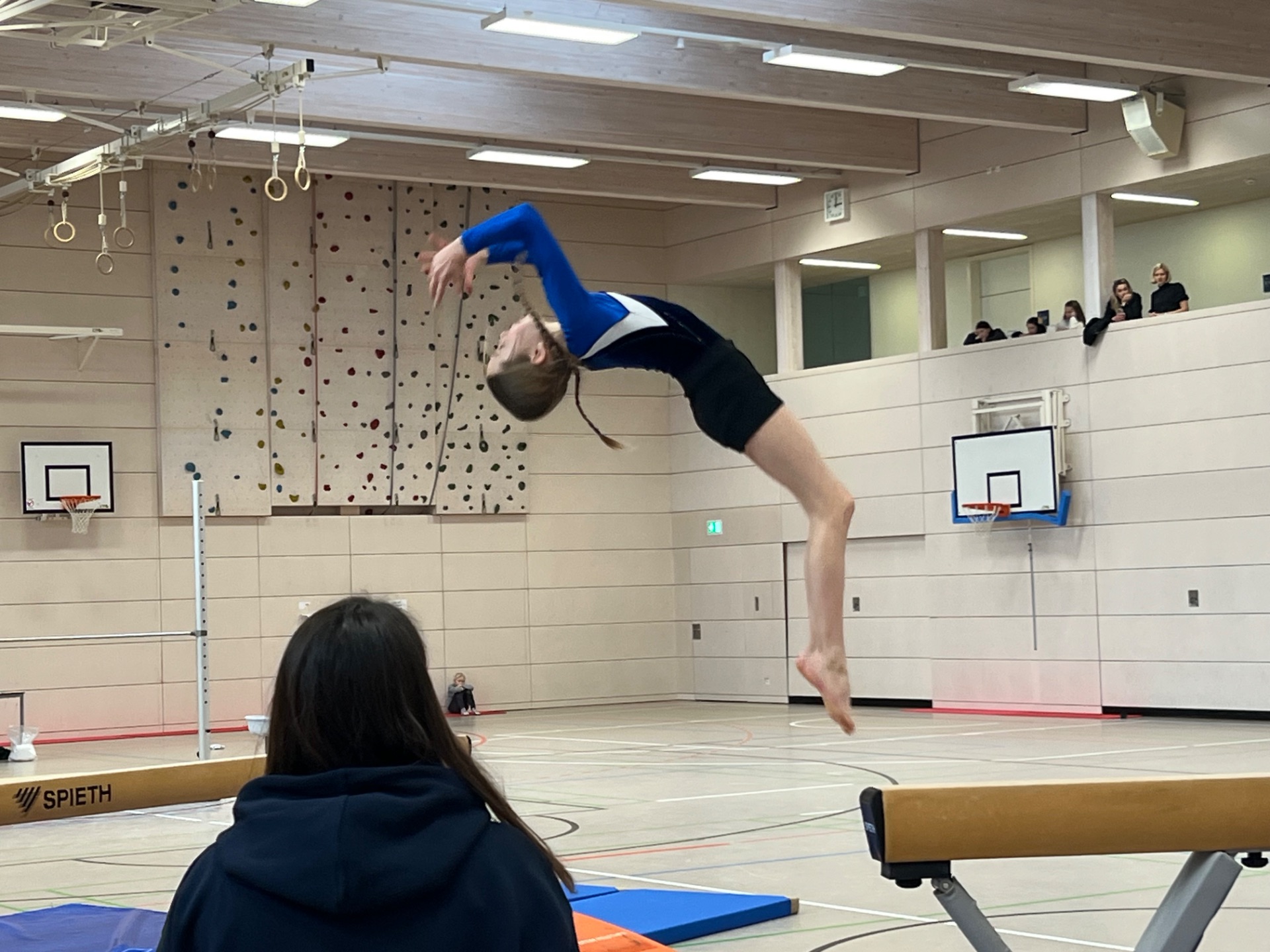 Geturnt wurde an vier Geräten: Schwebebalken, Boden, Sprung und Stufenbarren. Von Beginn an zeigte sich, dass das Niveau des Wettkampfs extrem hoch war. Einige der teilnehmenden Schulen sind ausgewiesene Stützpunktschulen für Gerätturnen, sodass zahlreiche Leistungsturnerinnen am Start waren.Trotz dieser starken Konkurrenz konnten unsere Mädchen gut mithalten und zeigten durchweg saubere Übungen und großen Einsatz. Alle Turnerinnen gaben ihr Bestes, unterstützten sich gegenseitig und sammelten wertvolle Wettkampferfahrung auf Bezirksebene. Am Ende erreichte unser Team einen respektablen 13. Platz.