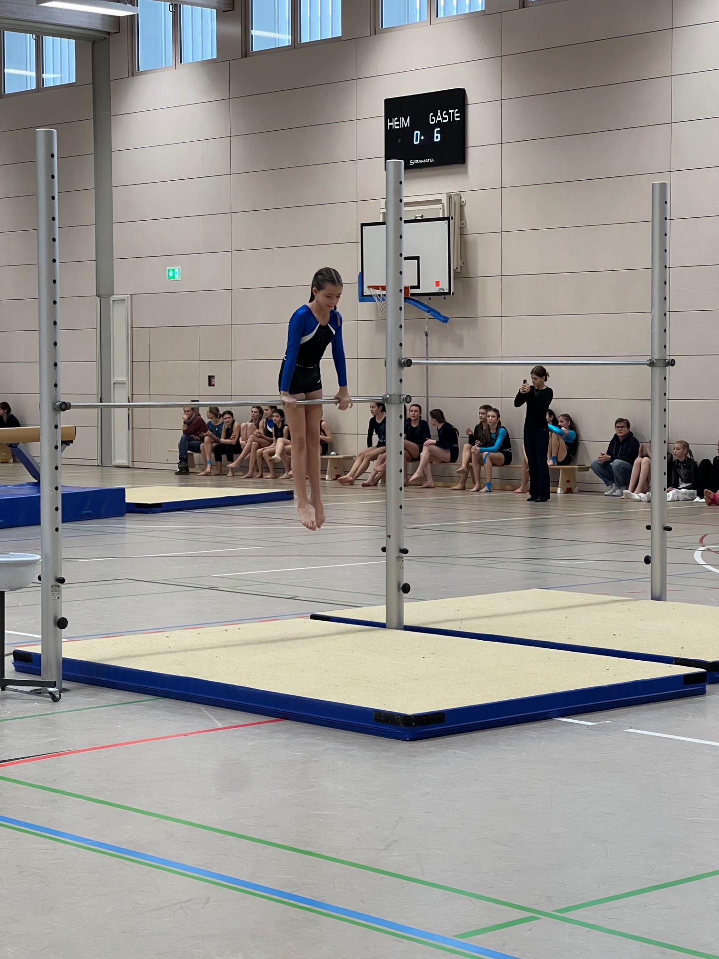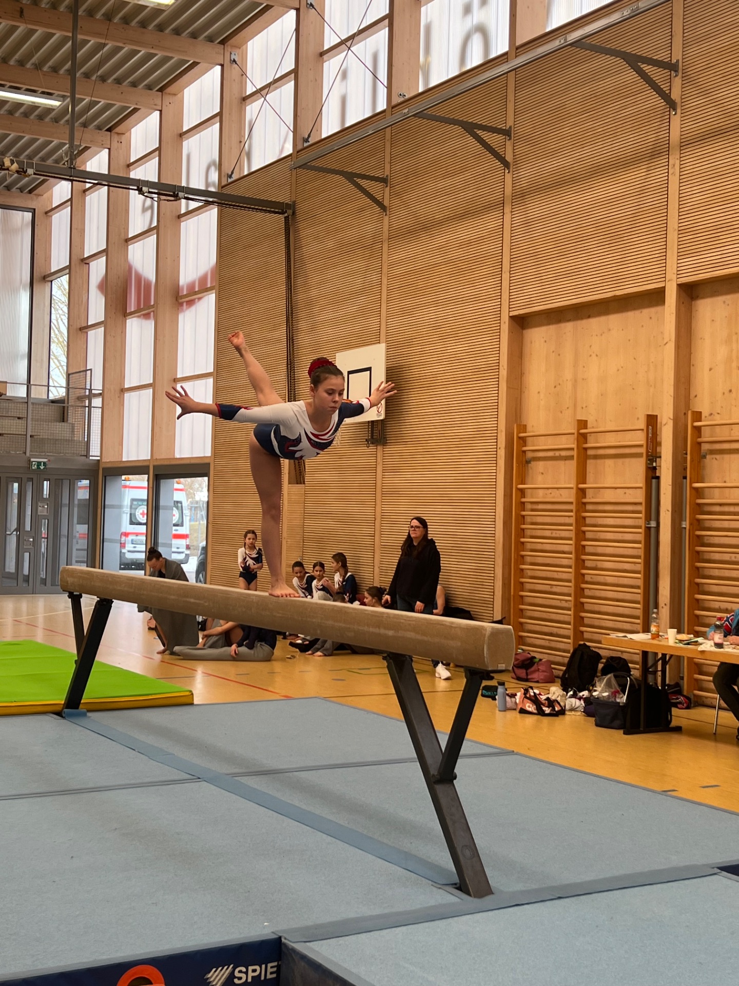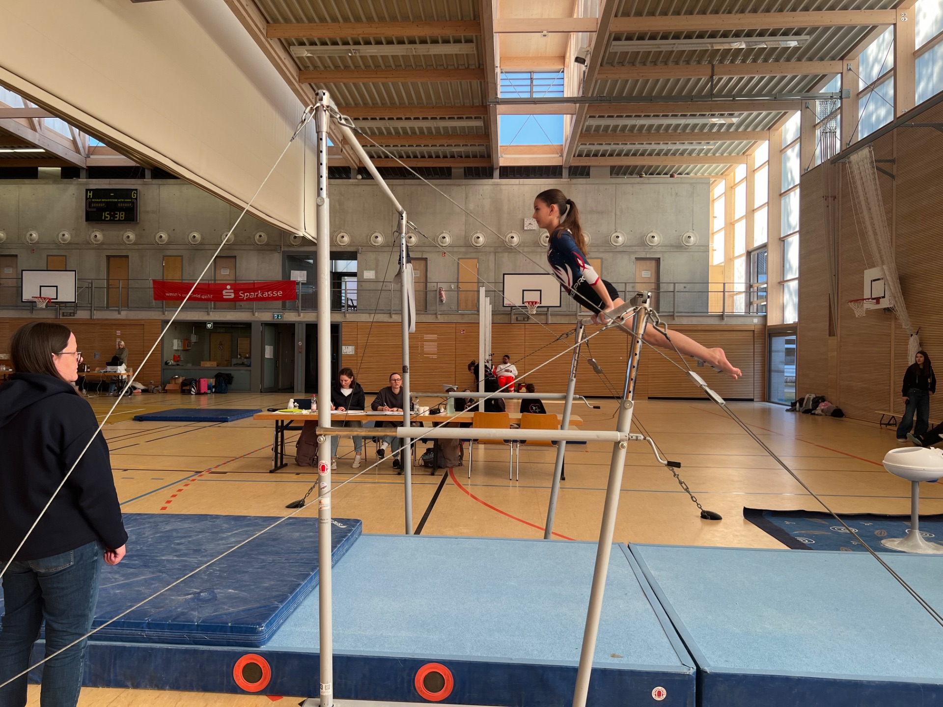 Geturnt wurde an vier Geräten: Schwebebalken, Boden, Sprung und Stufenbarren. Von Beginn an zeigte sich, dass das Niveau des Wettkampfs extrem hoch war. Einige der teilnehmenden Schulen sind ausgewiesene Stützpunktschulen für Gerätturnen, sodass zahlreiche Leistungsturnerinnen am Start waren.Trotz dieser starken Konkurrenz konnten unsere Mädchen gut mithalten und zeigten durchweg saubere Übungen und großen Einsatz. Alle Turnerinnen gaben ihr Bestes, unterstützten sich gegenseitig und sammelten wertvolle Wettkampferfahrung auf Bezirksebene. Am Ende erreichte unser Team einen respektablen 13. Platz.