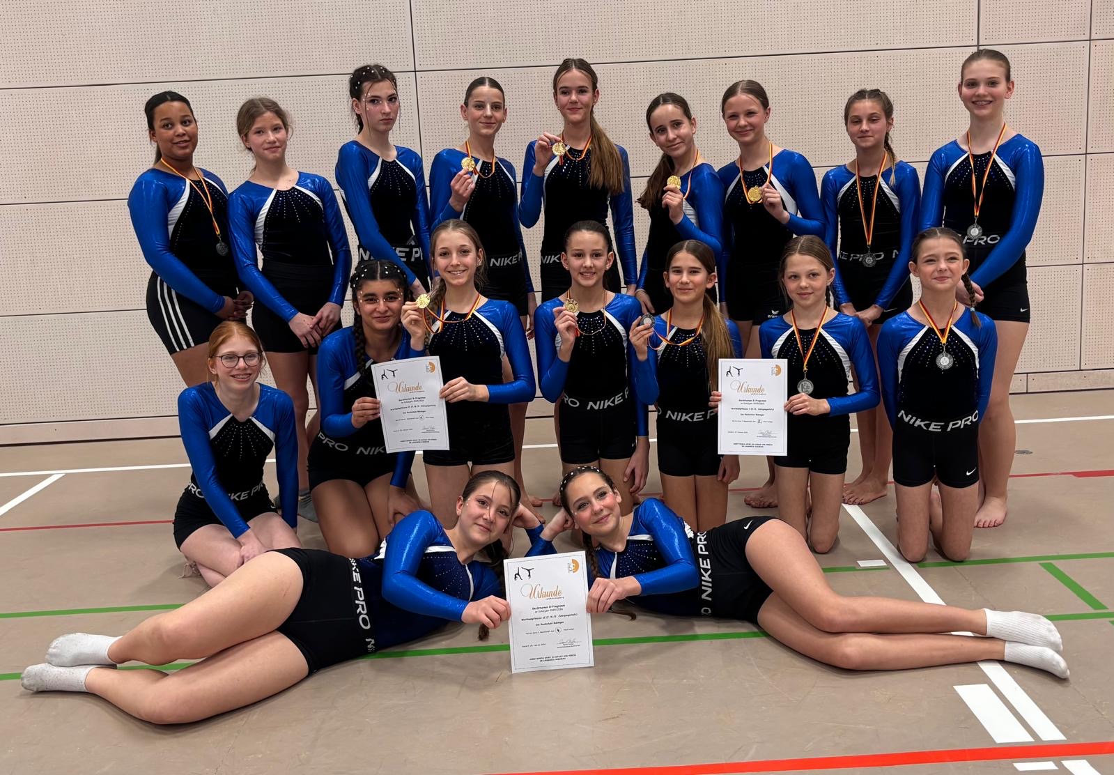 Ein besonderes Highlight bildeten zum Abschluss die Gruppen-Choreografien am Boden. Diese wurden nach den Kriterien Kreativität, Raumausnutzung, Niveau der Elemente und Synchronität bewertet. Unsere Turnerinnen überzeugten auch hier mit gelungenen Darbietungen und großem Teamzusammenhalt.
