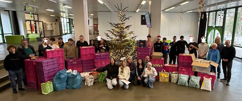 Am Dienstag, den 11. November 2025, besuchte unsere SMV gemeinsam mit fünf ausgewählten Schülerinnen und Schülern den Bobinger Tisch, um einen Tag lang aktiv mit anzupacken. Ziel des Besuchs war es, einen direkten Einblick in die wertvolle Arbeit der Einrichtung zu gewinnen – als Vorbereitung auf die bevorstehende Spendenaktion an unserer Schule.